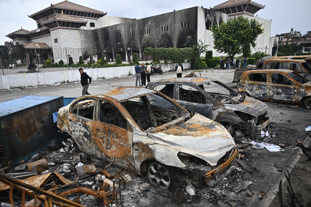 Nepal is assessing the multi-million dollar damage from last week’s violent protests, when parliament, government offices and a newly opened Hilton Hotel were set ablaze.At least 72 people were killed in two days of anti-corruption protests, with scores more badly injured, according to official figures.”So much has been destroyed,” police spokesman Binod Ghimire told AFP, adding that it would take time to calculate the full extent of the damage, including outside the capital.Nepal’s new interim Prime Minister Sushila Karki, speaking as she began work on Sunday, described the “widespread loss of lives and property”.At the Supreme Court, officials are working under tents outside the charred building, alongside rows of burned-out vehicles, trying to salvage water-soaked documents.AFP photographers who visited the gutted parliament building said entire halls had been reduced to blackened ruins by fires that burned uncontrolled for hours on September 9.The Hotel Association of Nepal reported more than 20 hotels damaged, including the Hilton fire. Others were looted.Losses were estimated at 25 billion Nepali rupees ($177 million), with more than 2,000 workers affected. Damage to the Hilton alone was put as high as $56 million.Tourism is a key employer, the country’s fourth largest, providing jobs to more than 371,000 people, according to government figures, with more than a million visitors every year.Fire also ripped through Singha Durbar, the sprawling palace that housed the prime minister’s office and ministries.The historic building is in ruins, its white pillars streaked black.As well as government offices, police stations were attacked, and courts were burned.”All our records, evidence, files of the Supreme Court have been all destroyed,” Karki said. “Extremely important bodies of the state were targeted and attacked.”- ‘Time and resources’ -More than 12,500 prisoners who escaped during the chaos remain on the run, presenting a major security challenge.Protesters targeted symbols of the ruling elite or the wealthy. They torched the homes of politicians, car showrooms, and private offices.Even media outlets were stormed and set ablaze.The Kantipur Media Group’s building was badly damaged, although the broadcaster has returned to air from a makeshift studio and its newspaper has resumed online.Durga Khanal, 45, from the Department of Roads, said her office had been badly damaged.”I support the change they are striving for, but I cannot agree with the destruction of physical infrastructure,” she said.New minister Kulman Ghising, who has the energy, infrastructure, transport and urban development portfolios, has ordered a rapid damage assessment and a reconstruction roadmap within a week.Nepal’s chambers of commerce and industry federation said it was still collating information.”No type of infrastructure has been spared. The government, private sector, media have all endured losses,” economist Chandra Mani Adhikari told AFP.”It will take a lot of time and resources to recover and rebuild everything.”