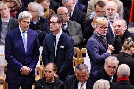 Trump shook hands with Britain’s Prince William and heads of state and government as he made his way to the front of the cathedral. He sat next to Macron and Macron’s wife Brigitte in the front row. Jill Biden, the wife of U.S. President Joe Biden, sat on the other side of Brigitte Macron.