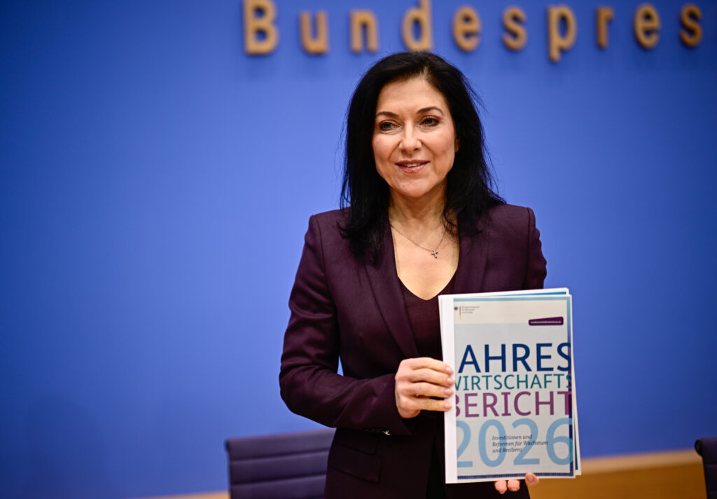 Les espoirs d’une reprise rapide en Allemagne se dissipent: Berlin a abaissé mercredi sa prévision de croissance pour 2026, la relance budgétaire peinant à produire ses effets, tandis que les tensions commerciales et la crise industrielle persistent.Le Produit Intérieur Brut (PIB) de l’Allemagne devrait croître de 1% selon le rapport annuel du ministère de l’économie, qui tablait à l’automne sur un rebond de 1,3%. Le constat est amer pour la coalition du chancelier Friedrich Merz, qui promettait, depuis son intronisation en mai, une embellie en 2026 grâce aux centaines de milliards d’euros d’investissements publics adoptés pour moderniser la défense et les infrastructures. Neuf mois plus tard, sa ministre de l’Economie Katherina Reiche se voit confrontée au mécontentement croissant de la population et du patronat, qui réclame d’autres réformes pour relancer la première économie européenne. – “Légère trajectoire de reprise” -“Les impulsions attendues [de la relance budgétaire] ne se sont pas concrétisées aussi rapidement et dans la mesure que nous l’avions prévu”, a reconnu la ministre conservatrice lors d’une conférence de presse. Certes, ce “bazooka” d’investissements devrait représenter deux tiers de la croissance engrangée cette année, et redresser la consommation des ménages et des administrations publiques.De quoi engager le PIB sur une “légère trajectoire de reprise” selon la ministre, après une mini-croissance de 0,2% en 2025 et deux années consécutives de récession.Mais “les perspectives de croissance structurelle restent sensiblement affaiblies”, note le rapport.Pour 2027, le gouvernement a aussi revu à la baisse sa prévision, de 1,4% à 1,3% du PIB.Comme l’an dernier, les exportations allemandes, ancien moteur de la croissance, vont souffrir en 2026 d’un environnement mondial “très difficile” selon Mme Reiche, entre avalanche de droits de douane américains et concurrence chinoise.Les exportations vers les Etats-Unis, son ancien premier partenaire commercial, se sont effondrées de 9,4% entre janvier et novembre 2025, par rapport à 2024.”Les menaces de relèvement des droits de douane, comme récemment aux États-Unis, créent en outre des incertitudes”, a ajouté Katherina Reiche.Elle note toutefois “une nette reprise” dans le secteur industriel en crise, avec une embellie de la production et des commandes, notamment dans les biens d’équipements.Mais les défis restent colossaux pour redresser une industrie allemande à la dérive, qui réclame une nette baisse des prix de l’énergie et un allègement de la bureaucratie.- Début d’année “poussif” -Cette révision à la baisse du gouvernement “n’est pas surprenante”, affirme à l’AFP l’économiste Felix Schmidt, chez Berenberg.Il pointe en particulier “un début d’année poussif, comme suggéré par l’indice du climat des affaires de l’institut Ifo pour janvier”, publié lundi.”Cela laisse présager une croissance très faible au premier trimestre et cela abaisse la base de référence pour les prévisions 2026″, affirme à l’AFP Jörg Krämer, chef économiste chez Commerzbank.Afin que les dépenses supplémentaires de l’Etat “ne se transforment pas en coûteux feu de paille, des réformes d’accompagnement seront également nécessaires”, prévient M.Schmidt.Mme Reiche a défendu l’action du gouvernement pour aider les entreprises et ménages, notamment via des allègements fiscaux, un premier pas selon les fédérations professionnelles du pays.Cette année, le camp de Friedrich Merz promet une réforme d’ampleur du système de prestations sociales, jugé trop coûteux, et le chancelier répète sa volonté d’augmenter le temps de travail pour accroître la productivité.Reste que neuf mois après son entrée en fonction, Katherina Reiche ne recueille que 18% d’avis favorable dans la population, selon un sondage de l’institut Forsa. C’est pire que son prédécesseur écologiste Robert Habeck qui est resté 3 ans en fonction.