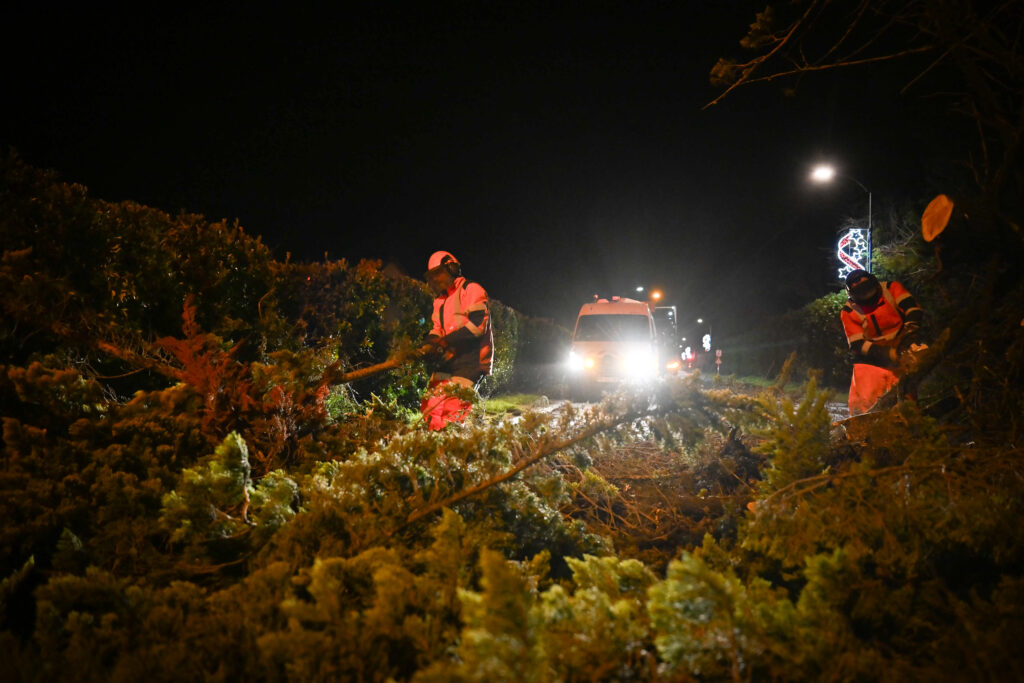 Quelque 380.000 foyers étaient privés d’électricité vendredi matin en France et les transports perturbés en région parisienne en raison de la tempête Goretti qui a balayé le nord-ouest du pays avec des vents dépassant parfois 200 km/h, sans faire de victime grave.Le ministère de l’Intérieur a fait état d’un bilan provisoire de 6 blessés légers.En Ile-de-France, les intempéries ont provoqué des chutes d’arbres qui perturbent la circulation des trains et RER, notamment sur la ligne A.Météo-France a confirmé le retour au calme dans son bulletin de 08h00 en rétrogradant en vigilance jaune la quasi totalité des départements français, notamment en Normandie, Ile-de-France et dans les Hauts-de-France. Même la Manche, en vigilance rouge une partie de la nuit, est revenue au jaune dans la matinée.Seules les Landes et les Pyrénées-Atlantiques restent placées en vigilance orange pour vent violent jusqu’à vendredi 18h00.”Les vents faiblissent progressivement” mais “les averses qui se mettent en place à l’arrière de la perturbation sont associées à de fortes rafales”, met toutefois en garde Météo-France.Du Finistère à la Seine-Maritime, les pompiers ont effectué des centaines d’interventions pour des chutes d’arbres et de câbles électriques ou des toitures endommagées mais aucun blessé grave n’a été signalé.”On était bien préparés, nous avons activé la cellule de crise et avions des équipes sur le terrain toute la nuit. Vingt personnes ont été relogées en urgence dans un gymnase, mais il n’y a pas eu de victimes”, a déclaré à l’AFP le maire de Cherbourg, Benoît Arrivé.”Il s’agit seulement de dégâts matériels (…) Ca a soufflé fort, mais les consignes ont bien été respectées par la population”, a-t-il souligné.La préfecture de la Manche avait appelé à rester à l’abri durant la tempête. Les écoles, collèges et lycées sont fermés vendredi dans ce département ainsi qu’en Seine-Maritime.- 216 km/h dans le Cotentin -Les vents violents ont provoqué de nombreuses coupures d’électricité et quelque 380.000 foyers étaient privés de courant vendredi à 06h00 sur l’ensemble de la France, a annoncé le gestionnaire de réseau Enedis.L’essentiel des foyers concernés se situe en Normandie (266.200), en première ligne face à la tempête durant la nuit, mais la Bretagne (21.000), la Picardie (18.500) et l’Ile-de-France (13.500) sont également touchées.Ce bilan est nettement inférieur à celui de la tempête Ciaran qui avait privé d’électricité 1,2 million de clients au total en novembre 2023.Le niveau d’alerte rouge pour vents violents, déclenché dans la Manche, n’avait plus été déclenché en France depuis Ciaran. Une rafale de vent a atteint 213 km/h à Barfleur, puis une autre a été mesurée à 216 km/h dans la même zone du Cotentin, selon un dernier bilan.Les sapeurs-pompiers de la Manche ont réalisé 146 interventions et deux personnes ont été transportées à l’hôpital.- Inondations à Etretat -En Seine-Maritime, un arbre de 45 mètres de haut s’est abattu sur un ensemble de cinq logements à Roncherolles-sur-le-Vivier, près de Rouen, nécessitant le relogement des occupants.Le port de Dieppe a été fermé en raison de la montée du niveau de l’eau, sous l’effet de la tempête qui a également provoqué des “inondations importantes” à Étretat et à Fécamp, sans faire de victimes, selon la préfecture de Seine-Maritime.Les autorités appellent à continuer à limiter les déplacements et à faire preuve de prudence sur les routes, qui peuvent être obstruées par des branches ou des lignes électriques.La tempête Goretti a aussi fortement perturbé la circulation des trains, avec près de 300 incidents dans les régions touchées: arbres, branches, serre ou bâches soufflés par le vent et posés en travers des voies, a expliqué SNCF Réseau à l’AFP.En Normandie, la région la plus touchée, une centaine d’incidents ont été recensés et la reprise du trafic, totalement interrompue depuis jeudi soir, pourrait prendre “plus de temps que prévu (…) compte tenu des dégâts sur les voies”, prévient la SNCF sur ses réseaux sociaux. Des lignes ont déjà été rouvertes en Bretagne et en Pays de la Loire.Des rafales frôlant les 160 km/h ont aussi balayé le sud-ouest de l’Angleterre et le Pays de Galles, laissant des dizaines de milliers de foyers sans électricité, et perturbant les transports.